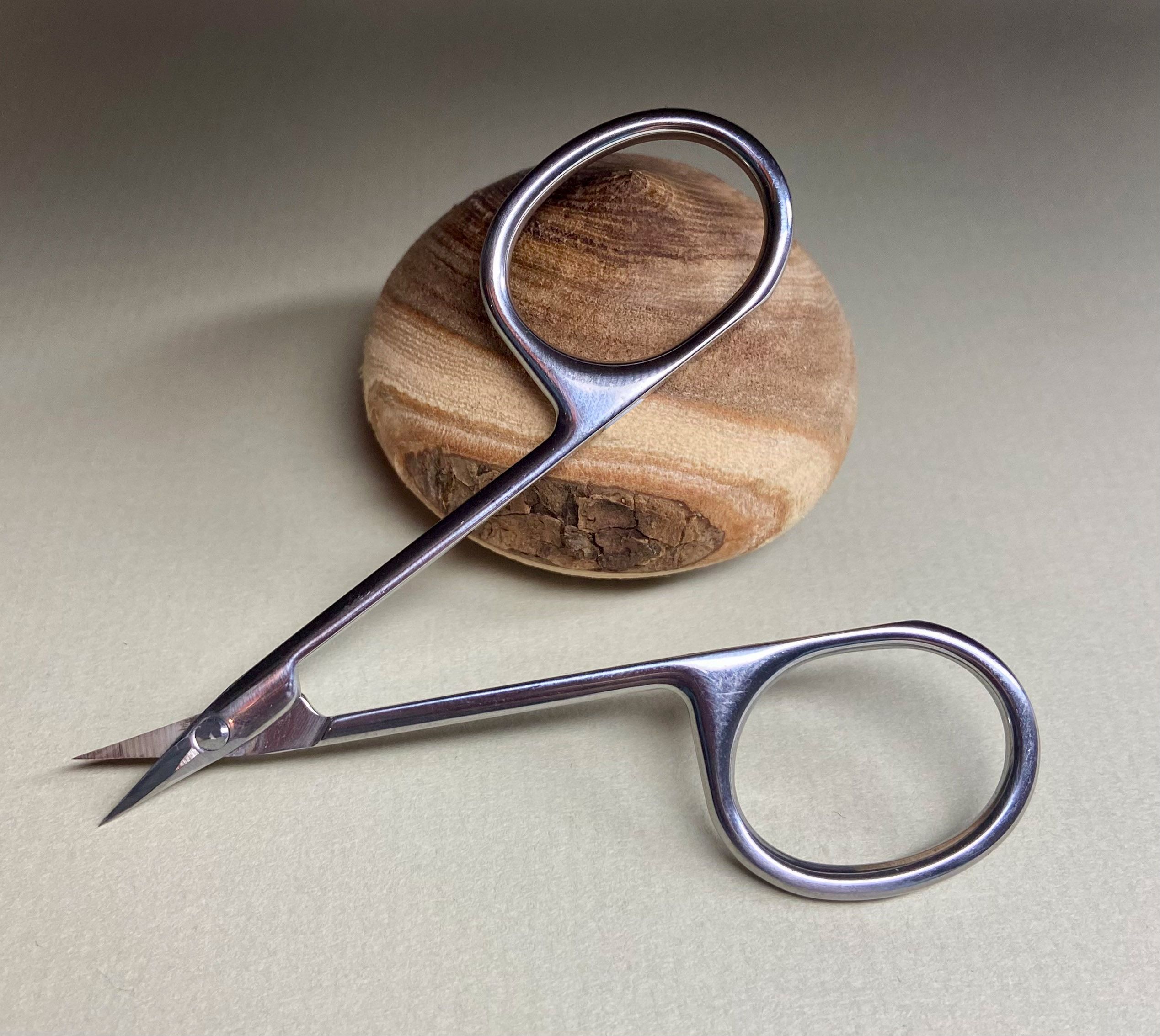 Jede dieser Scheren wird sorgfältig von Hand auf 13 mm gekürzt und anschließend unter der Lupe präzise geschliffen. Die schlanke Nadelspitzen-Form ermöglicht ein müheloses Einstechen ins Papier und bietet maximale Kontrolle bei filigranen Arbeiten.